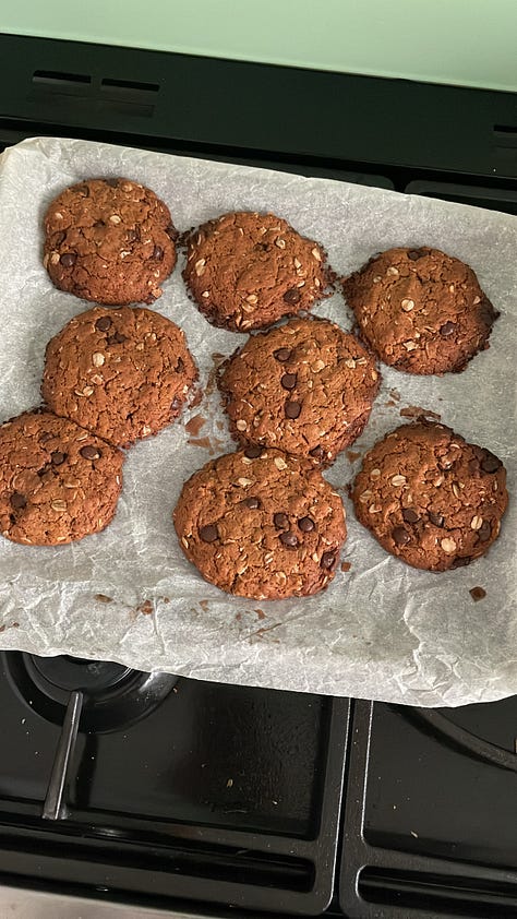 I make them at least once a week, often playing around with the ingredients - swapping choc chips for a swirl of nut butter or dark cocoa spread, or throwing in a handful of various dried fruits and nuts, and sprinkling toppings such as desiccated coconut and flaked almonds on top.
